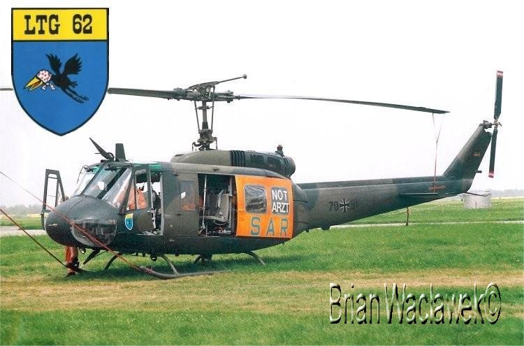 UH-1D "70+91" from LTG 62 on SAR dutis pictured here at ILA 2002 - INSERT - LTG 62 squadron badge.