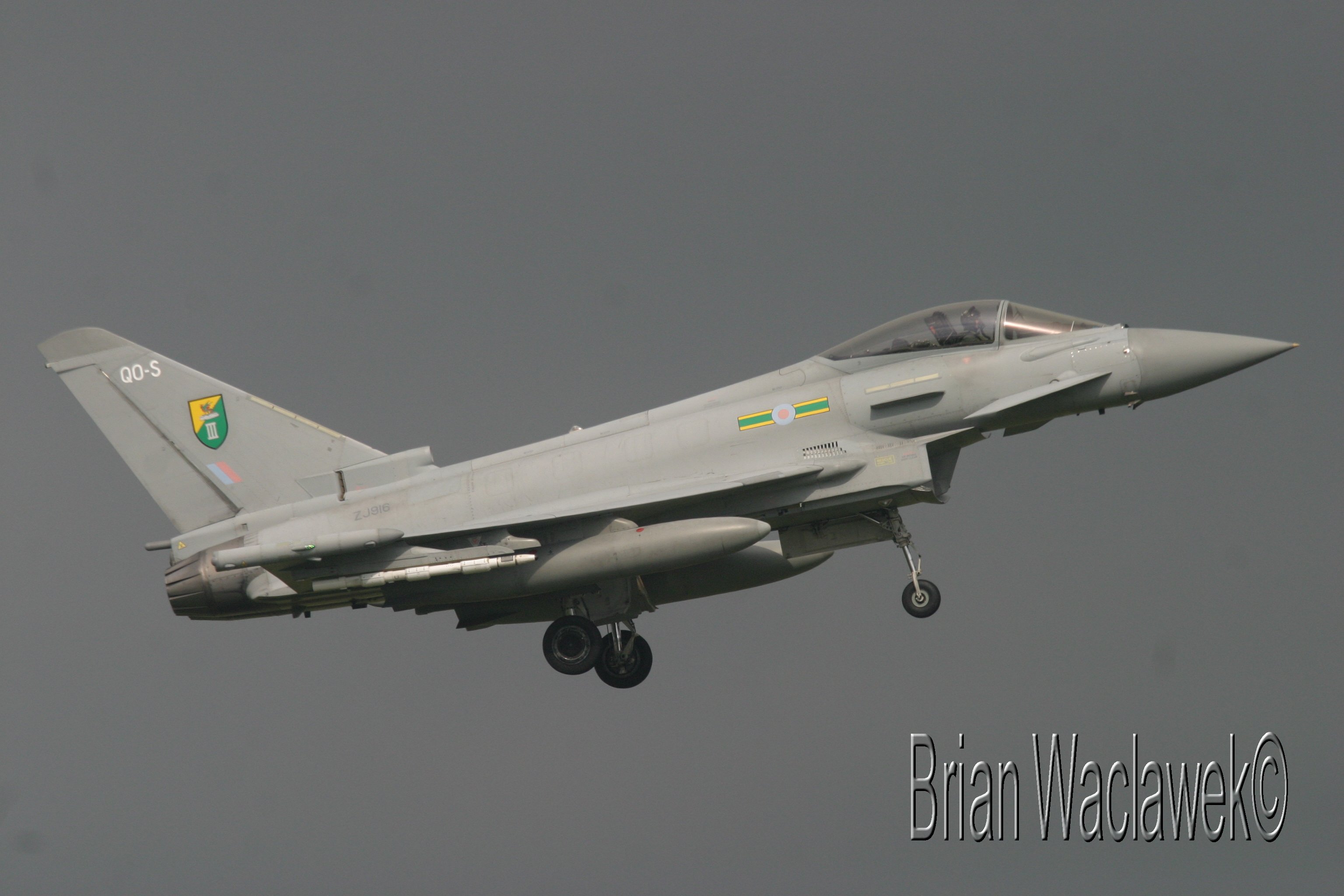 "ZJ916/QO-S" Eurofighter Typoon FGR 4 from 3 Squadron pictured here on a wet day in the Netherlands.