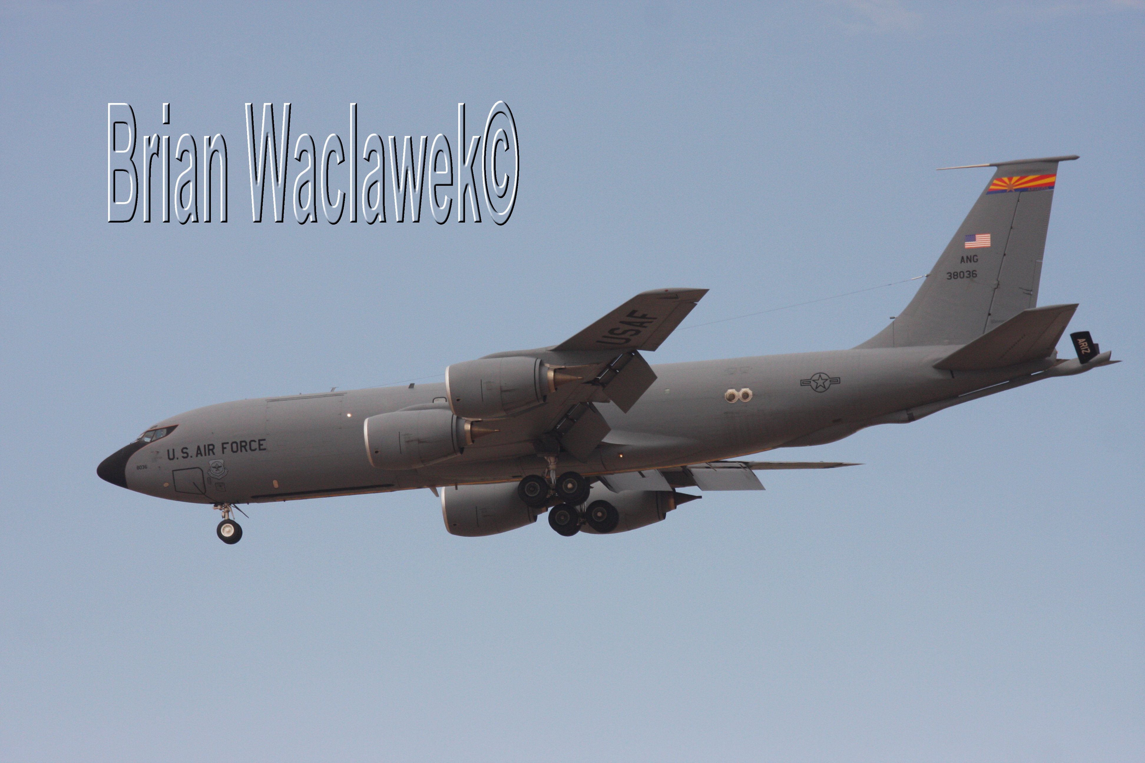 Arizona ANG KC-135R "63-8036" performing a touch and go at MCAS Yuma during 2012.